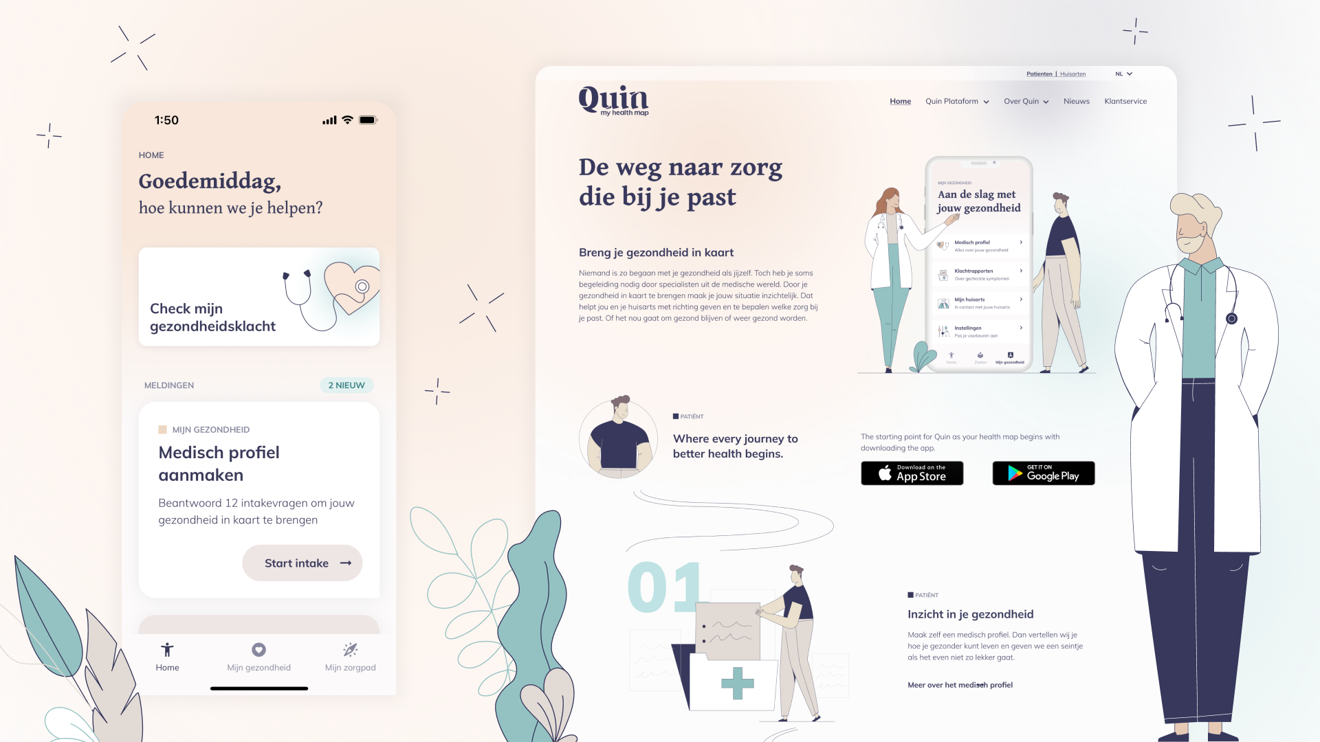 Every so often we meet a client at the very beginning of their journey. Quin arrived with a clear, ambitious aim: improve healthcare in the Netherlands and help people build a better relationship with their own health. Joining at start‑up stage meant shaping both the product and the brand, side by side.